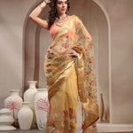 Beige Solid & Embroidered Super Net Saree With Unstitched Blouse (Pre-Order)