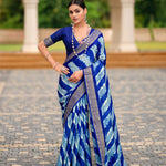 Blue Leheriya Printed Silk Blend Saree With Unstitched Blouse (Pre-Order)