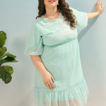 Women Sea Green Dobby Puff Sleeve Skater Dress