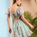 Women Sea Green Floral Sweetheart Neck Short Skater Dress