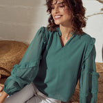 Sea Green Ruffle Detail Top , in Georgette fabric, Polyknit, Regular Length, Regular Fit, No Closure, Straight Hemline and features Waist Cut Out Detail