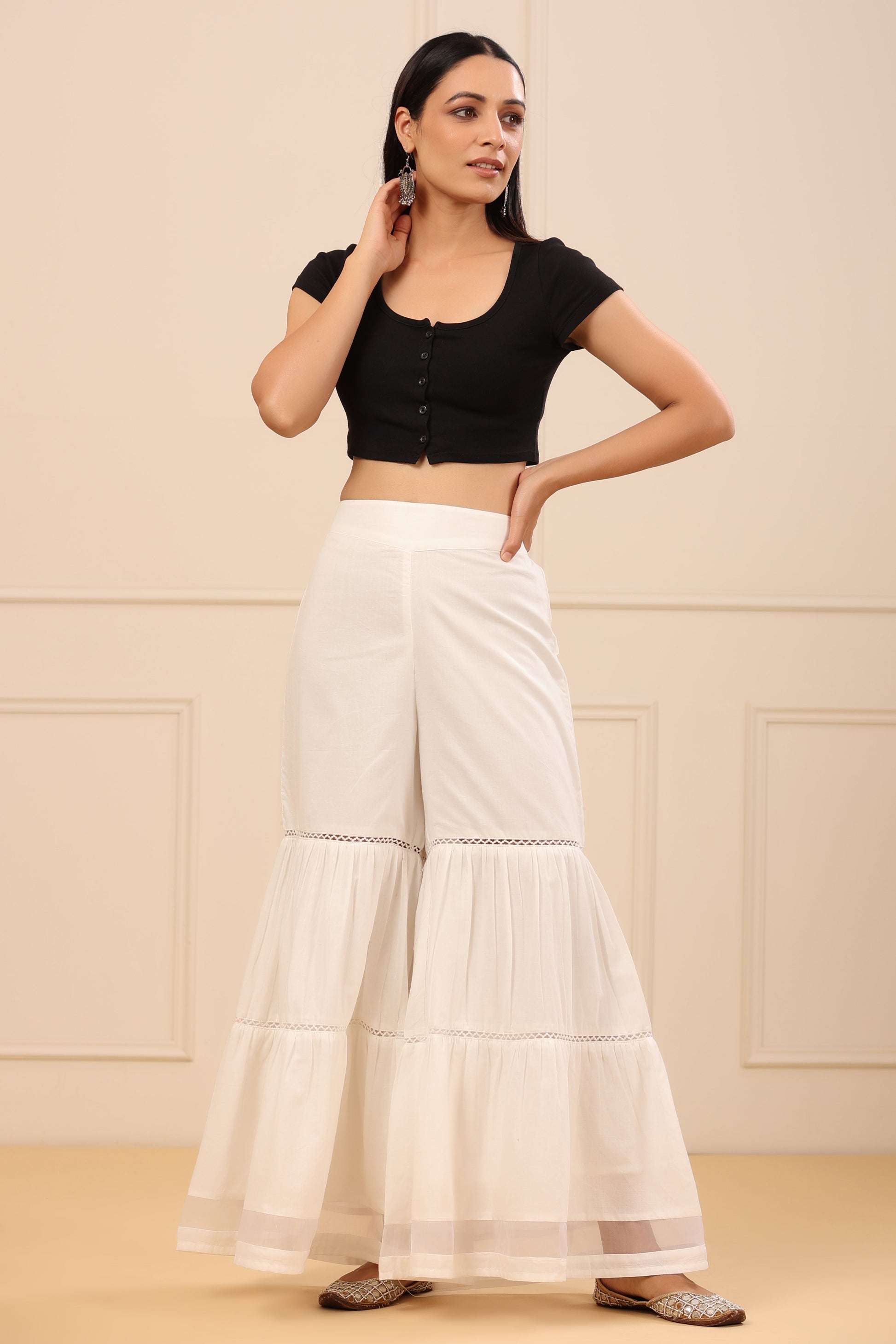 White Cambric Tiered Sharara