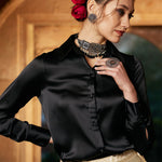 Women Black Satin Regular Shirt