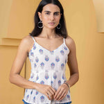 White Blue Printed Sleeveless Top