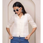 Cream Printed Straight Crop Top