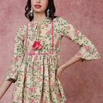 Rayon Short Length Length Printed 3/4 Sleeve Mandarin Top
