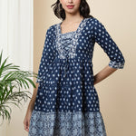 Cotton Short Length Length Printed 3/4 Sleeve Square Top
