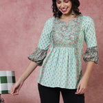 Cotton Short Length Length Printed 3/4 Sleeve Square Top
