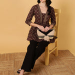 Cotton Midi Length Printed Flared 3/4 Sleeves V-Neck Tunic