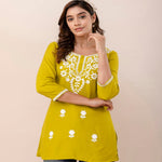 Rayon Hip Length Round Neck A-Line Top