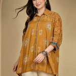 Rayon Hip Length Printed 3/4 Sleeve Shirt Collar Flared Top