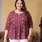 Plus Size Dabu Printed Cotton Peplum Top