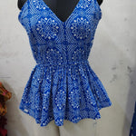Blue Bandhani Printed Rayon Short Peplum Top