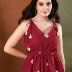 Maroon Bandhej Printed Rayon Short Peplum Top