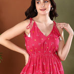 Coral Bandhej Printed Rayon Short Peplum Top