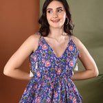 Blue Floral Printed Cotton Short Peplum Top