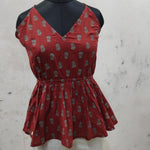 Rust Ethnic Motif Printed Cotton Short Peplum Top
