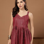 Women's Pink Woven Design Shimmer Lurex Cotton Empire Top