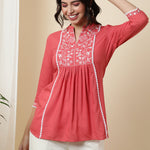 Rayon Short Length Length Solid Flared 3/4 Sleeves V-Neck Top