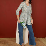 Cotton Crop Length Printed Flared 3/4 Sleeves V-Neck Top