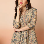Cotton Short Length Semi-Flared 3/4 Sleeves Coller Top