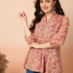 Cotton Short Length Semi-Flared 3/4 Sleeves Coller Top