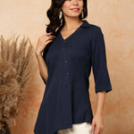 Cotton Flex Short / Hip Length Length Solid Asymmetrical 3/4 Sleeves Shirt Coller Top
