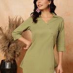 Cotton Flex Short / Hip Length Length Solid Asymmetrical 3/4 Sleeves Shirt Coller Top