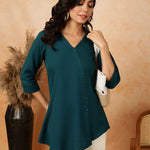 Cotton Flex Short / Hip Length Length Solid Asymmetrical 3/4 Sleeves Shirt Coller Top