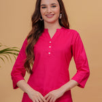 Pink Solid Tops & Tunic - Linen Fabric, 3/4 Sleeves, Mandarin Collar And Hips Length