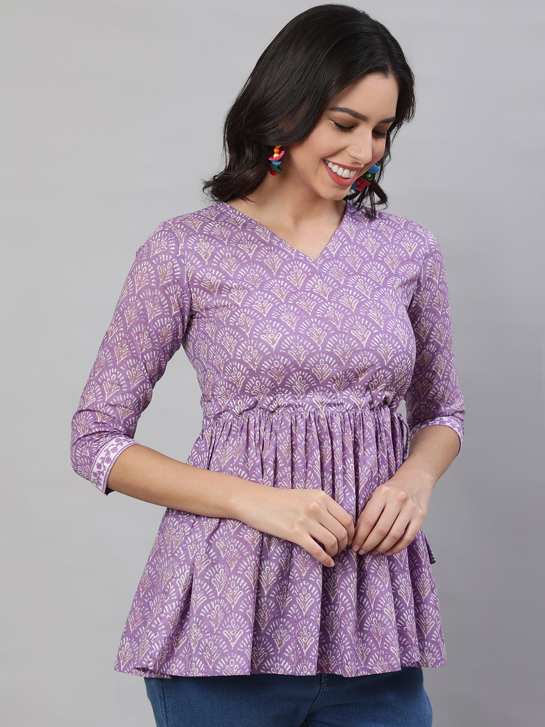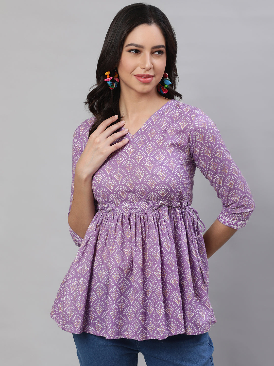 Printed 3/4 Sleeves Regular Pure Cotton Top