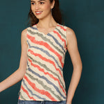 Cotton Printed Round Neck White Top