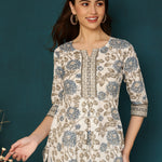 Cotton Printed Round Neck White Top