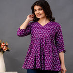 Printed 3/4 Sleeves Regular Pure Cotton Top