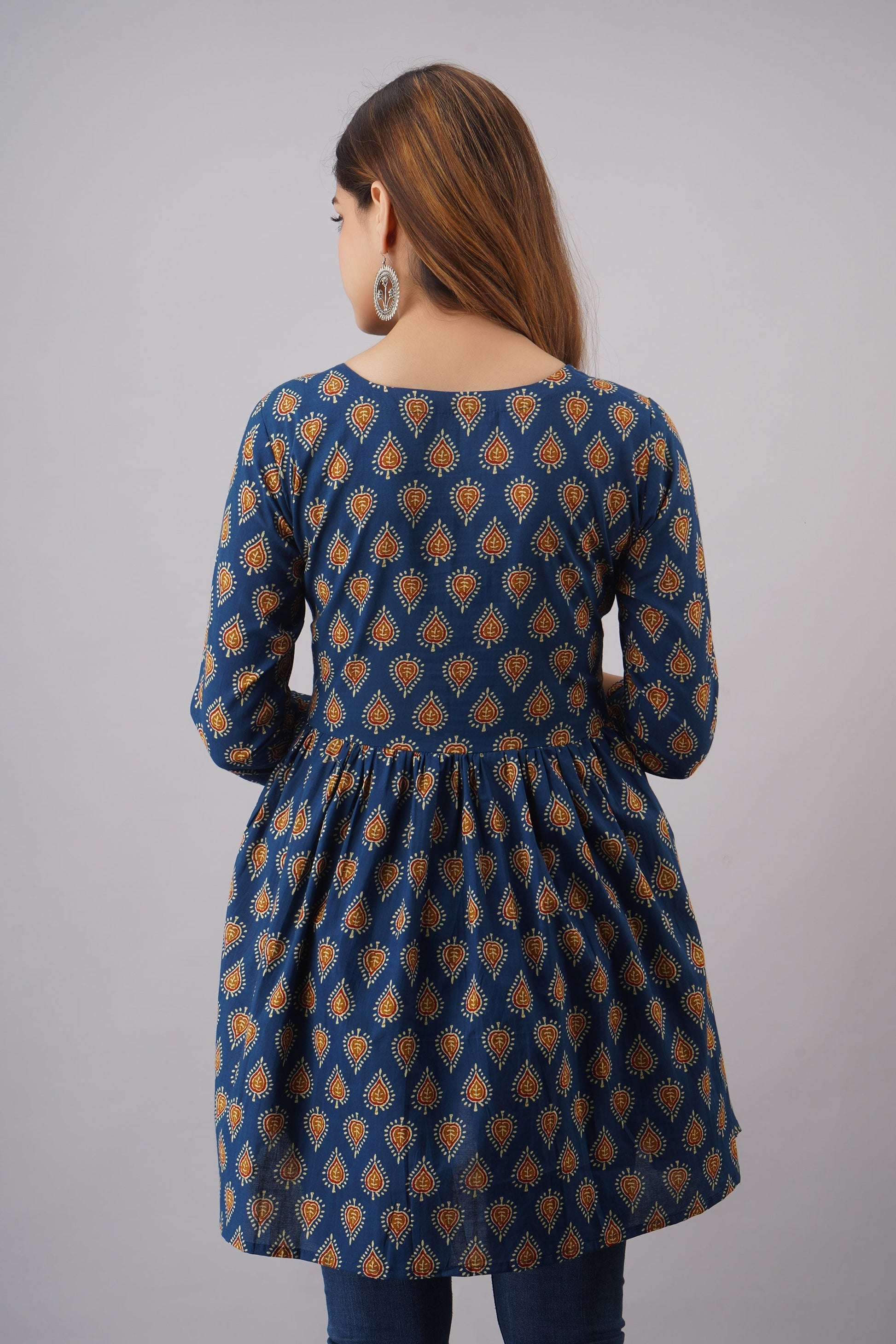 Cotton Short Length Printed Flared 3/4 Sleeves Round Neck Top (Preorder)