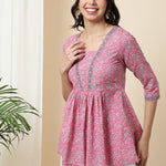 Cotton Short Length Length Printed 3/4 Sleeve Square Top (Preorder)