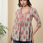Cotton Short Length Length Printed 3/4 Sleeve Square Top (Preorder)