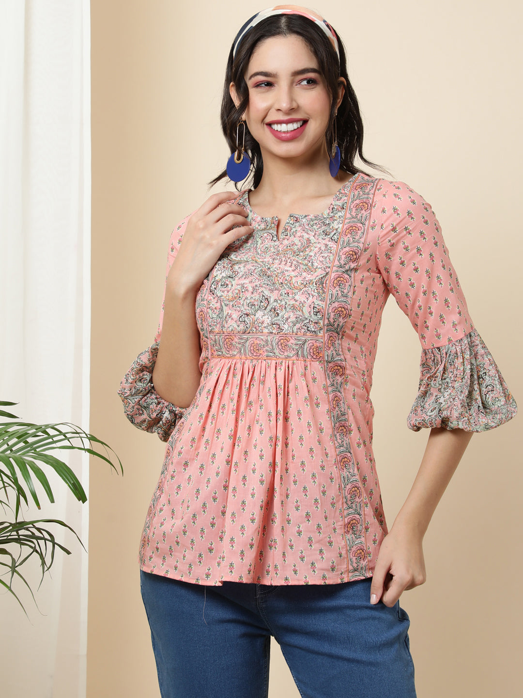 Cotton Short Length Length Printed 3/4 Sleeve Square Top (Preorder)