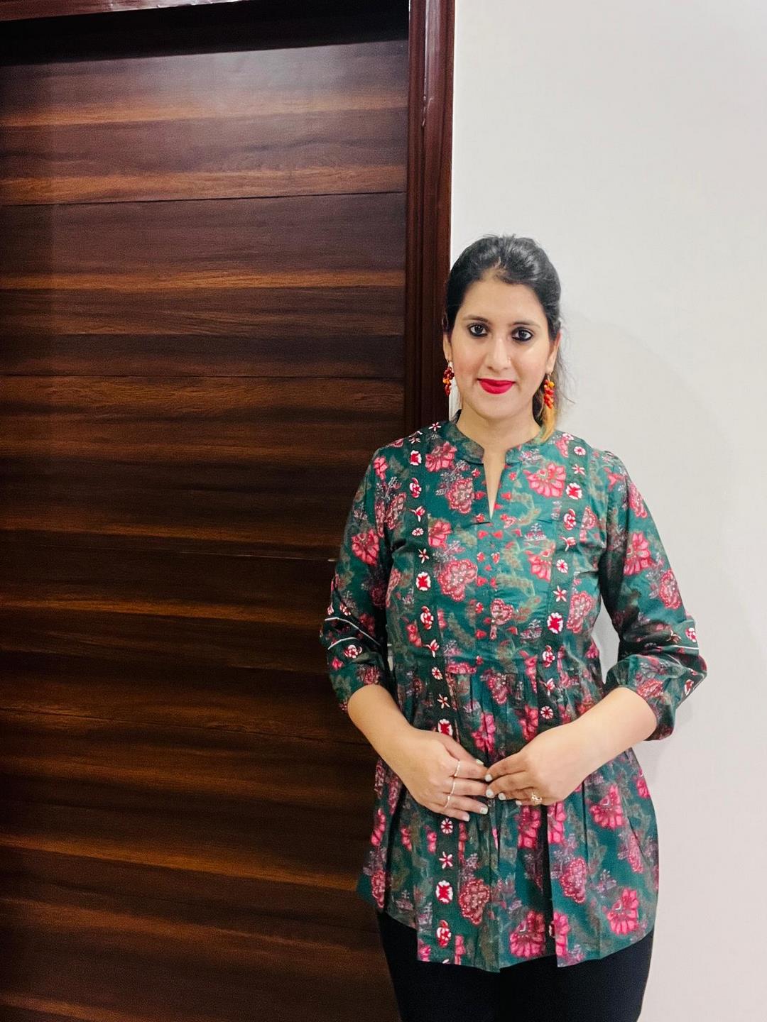 Printed Mandarin Collar Three-Quarter Sleeves Top (kimayra) (Preorder)