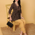 Rayon Midi Length Printed Flared 3/4 Sleeves V-Neck Tunic (Preorder)