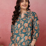 Printed 3/4 Sleeves Regular Pure Cotton (Teal) Top (Preorder)