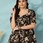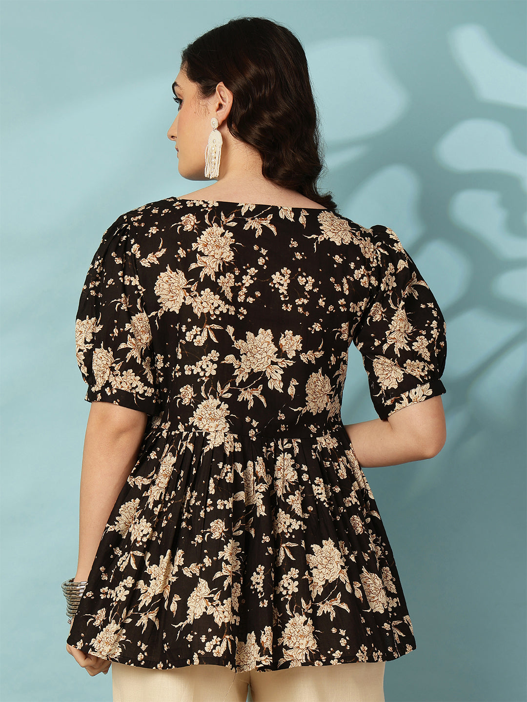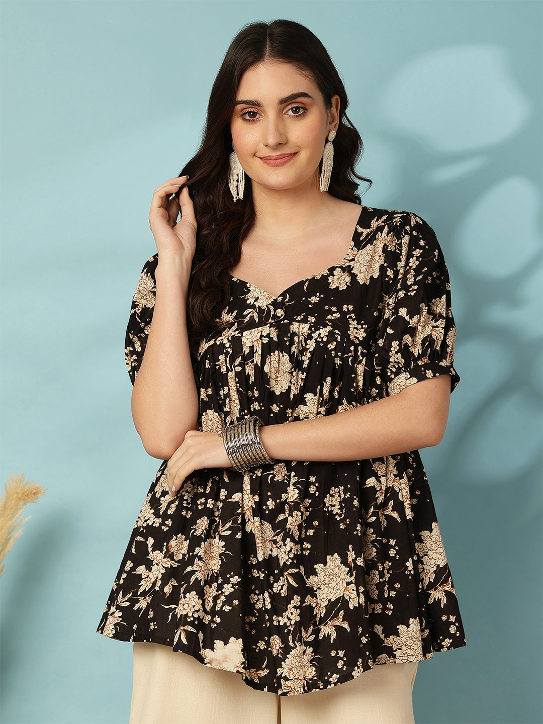 Printed Short Sleeve Regular Pure Cotton (Black) Top (Preorder)