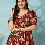 Printed Short Sleeve Regular Pure Cotton (Maroon) Top (Preorder)