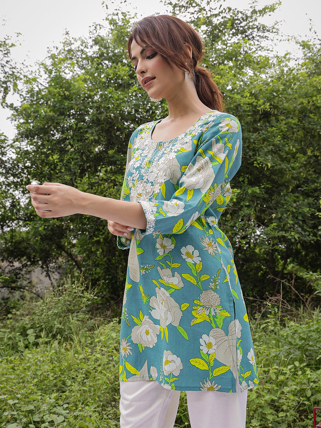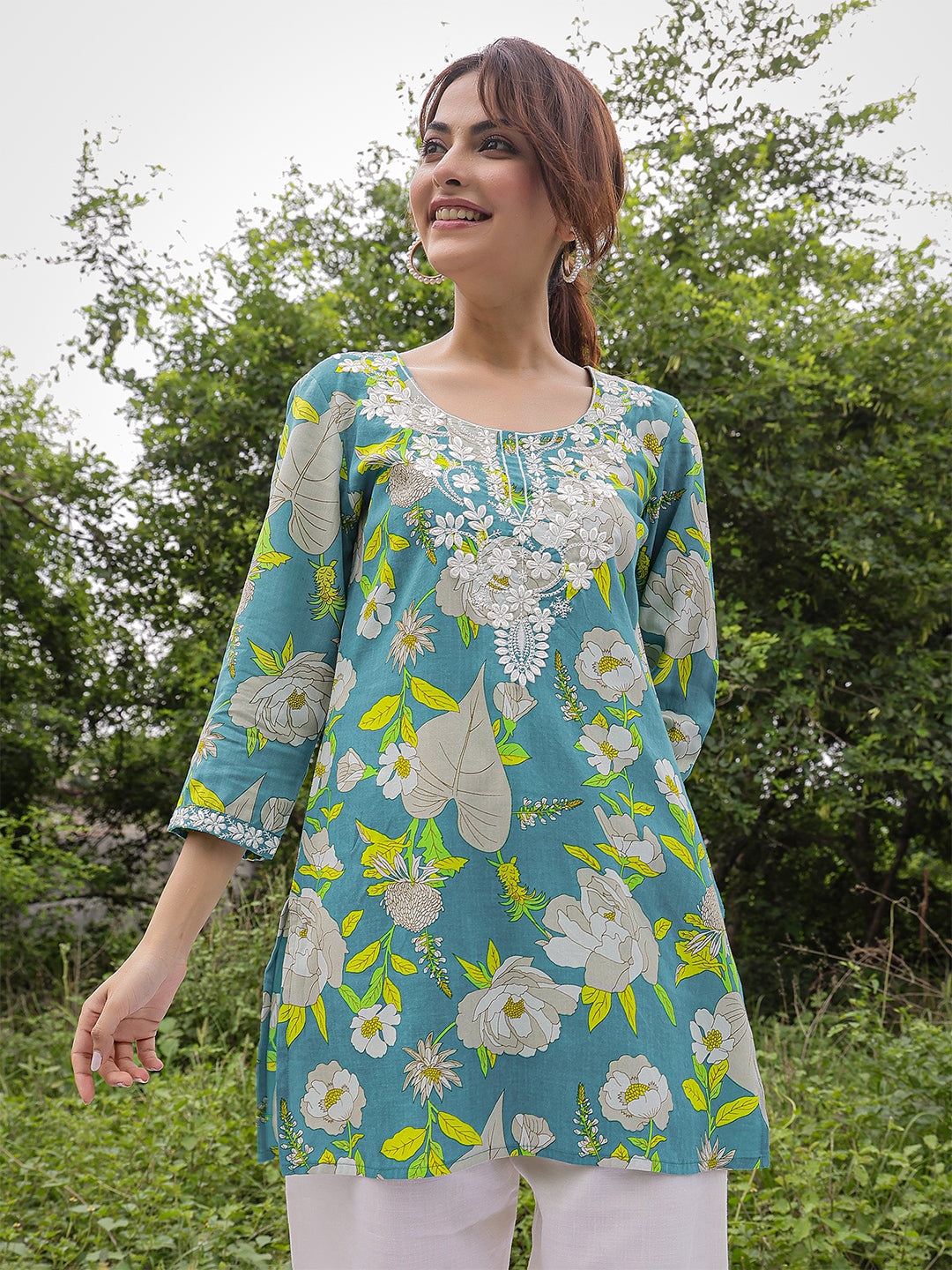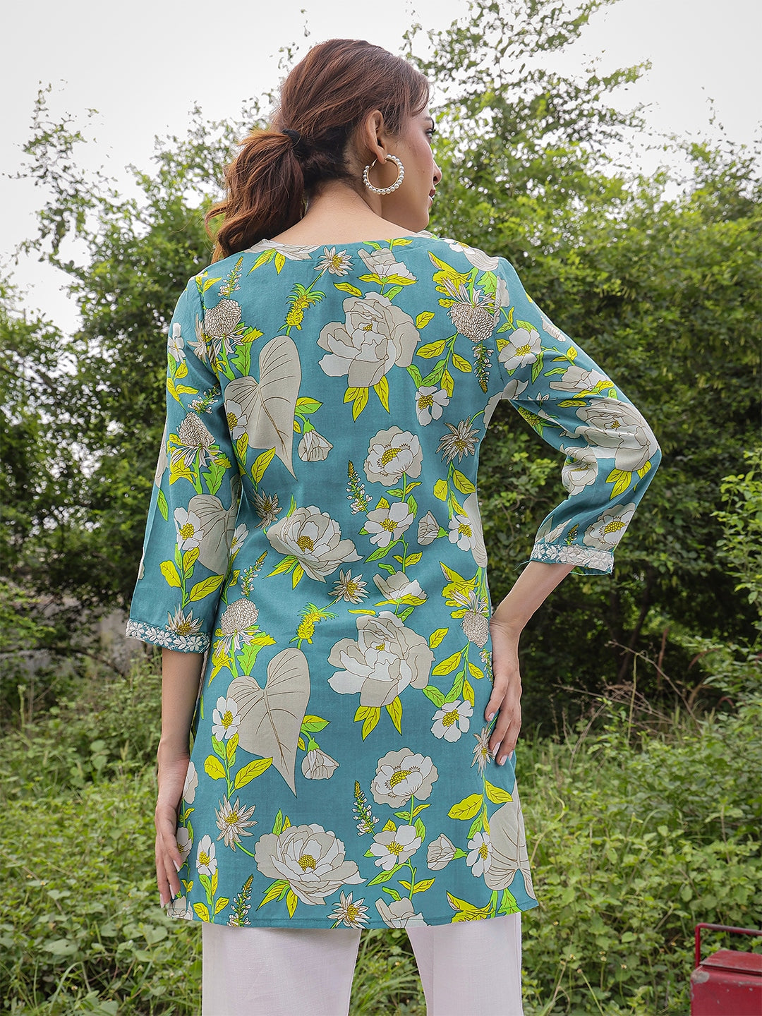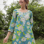 Rayon Hip Length Printed 3/4 Sleeve Round Neck Straight Top (Preorder)