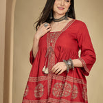 Rayon Hip Length Printed 3/4 Sleeve Square Flared Top (Preorder)