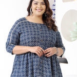 Plus Size Ethnic Motif Printed Cotton Peplum Top (Pre-Order)