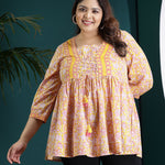 Plus Size Floral Printed Cotton Peplum Top (Pre-Order)