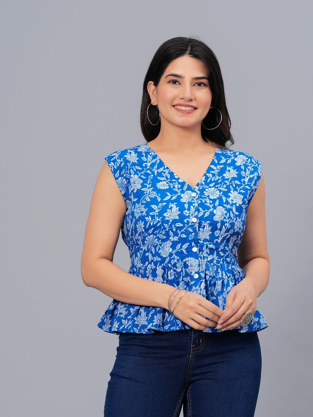 Floral Printed Cotton Peplum Top (Pre-Order)