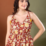 Rust Floral Printed Cotton Short Peplum Top (Pre-Order)