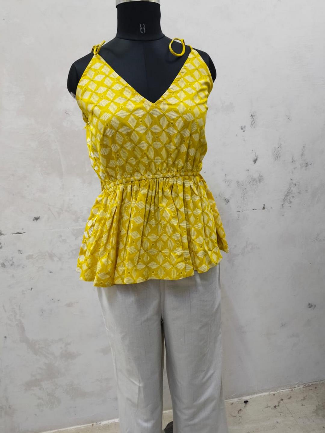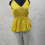 Yellow Geometric Printed Rayon Short Peplum Top (Pre-Order)